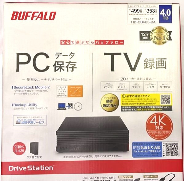 هارد اورجینال اکسترنال بوفالو 4 ترابایت مدل HD-CD4U3-BA